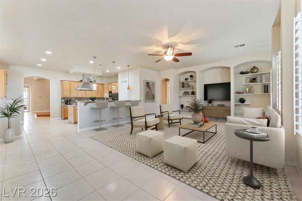 Welcome to a single-story home designed to grow w/ you, ideal for expanding families or multi-gen living. Thoughtful floor plan blends comfort & function. Backyard offers pool + space for alfresco entertaining, plus gated RV/tow parking on side. Private primary suite is set apart for added serenity. 3 secondary bedrooms feature en-suite baths, offering rare convenience & privacy. Open-concept kitchen overlooks family room, creating seamless flow for daily living & entertaining. Off kitchen, a versatile flex rm suits office, library, game rm, or study space. Backyard oasis includes pool w/ built-in solar cover + ample room to relax. 1 HVAC unit <3 yrs old. 3-car garage + dedicated RV parking w/ 220 power complete this unique offering. Rare opportunity combining flexibility, function & timeless appeal.