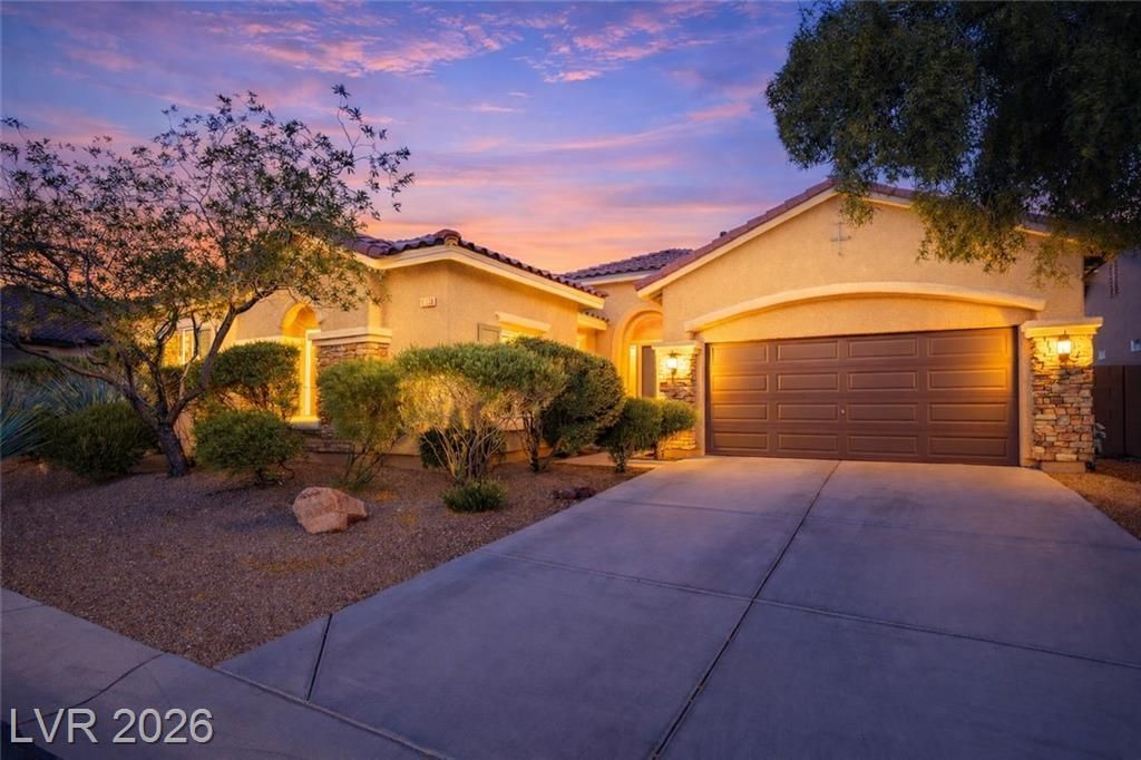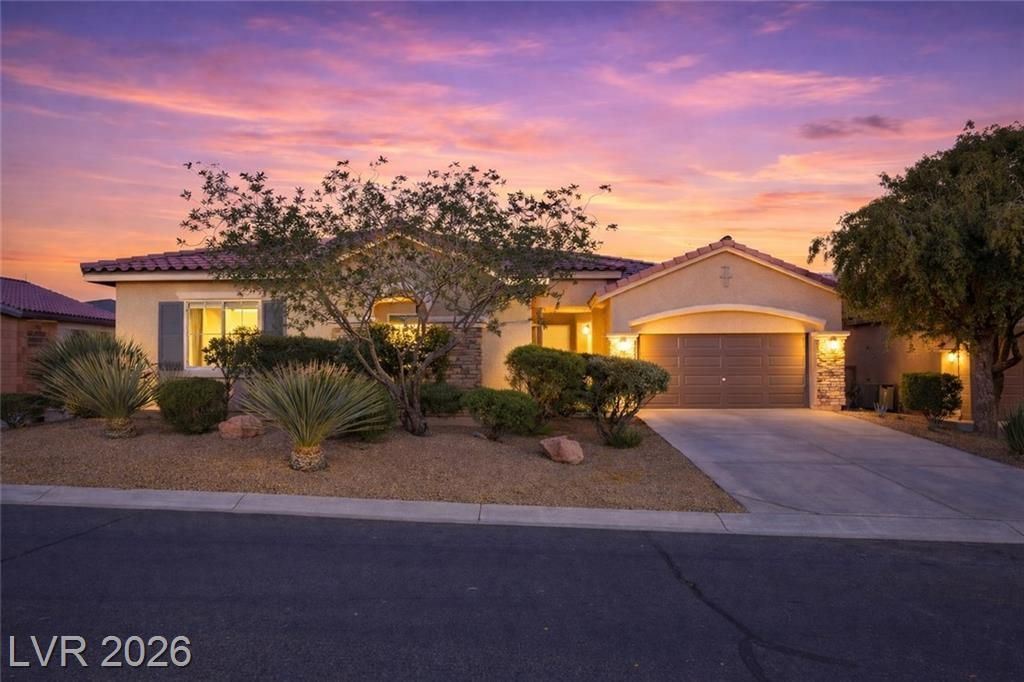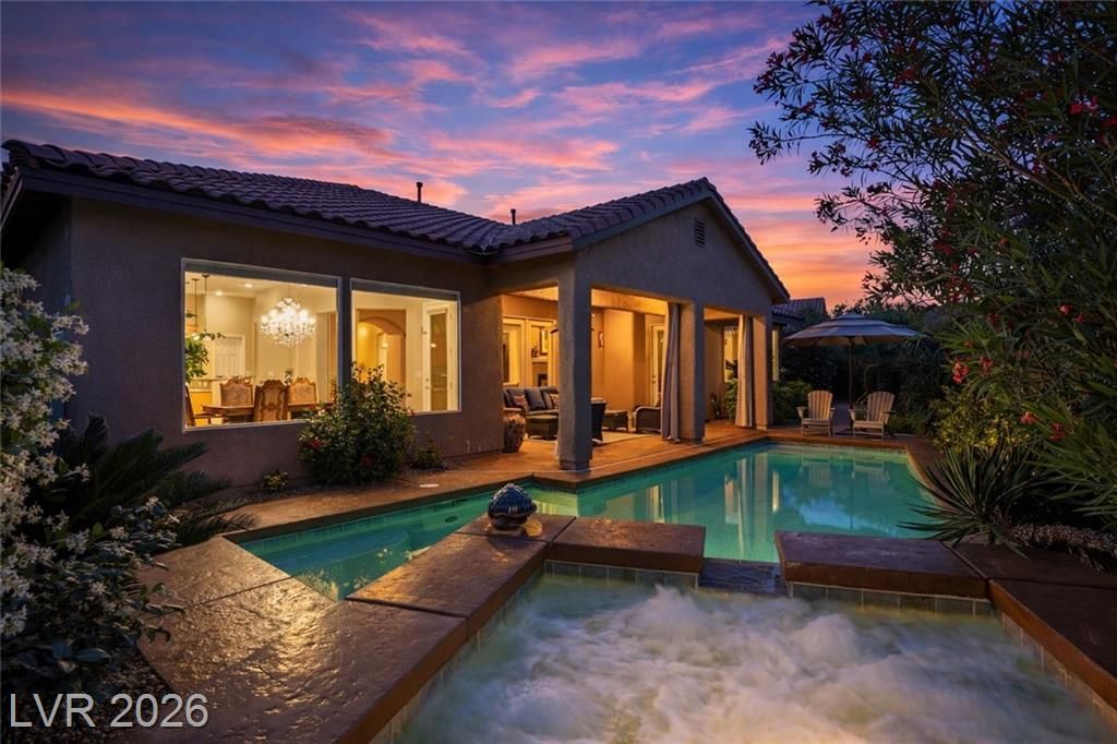 Discover single story living in the gated Yellowstone at Mountains Edge community with this spacious 2,866 sq ft, 5 bedroom, 4 bath home designed for comfort and indoor outdoor enjoyment. A private courtyard entry sets the tone, leading into an open layout with plenty of natural light and anchored by a warm family room fireplace. The kitchen and living spaces flow seamlessly for everyday living and entertaining. The laundry room offers added convenience with cabinetry and a sink. Step outside to the private backyard featuring a sparkling pool, covered patio, firepit, and pavered walkways, creating multiple areas to relax or host gatherings. Community amenities enhance the lifestyle with parks, trails, and recreation options and conveniently located near shopping and dining. A rare blend of space, privacy, and outdoor appeal in one of Mountains Edge's most desirable gated neighborhoods.