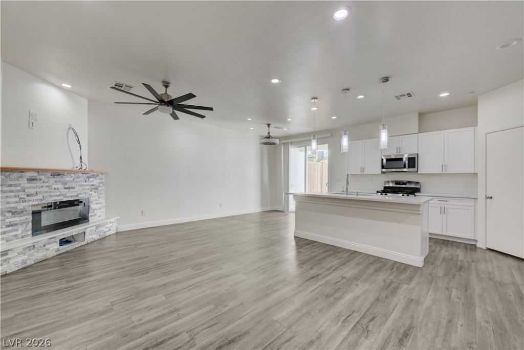 <<< AWESOME SPANISH-STYLE HOME >>> AND ONE OF THE FEW OPPORTUNITIES IN BOULDER CITY AT THIS PRICE! THIS BEAUTIFUL 3-BEDROOM HOME FEATURES AN OPEN-CONCEPT LIVING AREA WITH HIGHQUALITY MODERN LAMINATE FLOORING AND A COZY FIREPLACE, PERFECT FOR ENJOYING TIME WITH LOVED ONES. THE KITCHEN OFFERS QUARTZ COUNTERTOPS, A QUARTZ ISLAND, AND RECESSED LIGHTING FOR A CLEAN, MODERN FEEL. BEDROOMS INCLUDE ELEGANT LAMINATE FLOORING AND CEILING FANS. BATHROOMS HAVE A STYLISH UPDATED LOOK WITH QUARTZ COUNTERTOPS. THE PRIVATE BACKYARD IS DESIGNED FOR RELAXATION WITH PAVERS AND DECORATIVE ROCK?IDEAL FOR MORNING COFFEE OR EVENING UNWINDING. GREAT BOULDER CITY LOCATION WITH EASY ACCESS TO US-95, JUST MINUTES TO LAKE MEAD, HOOVER DAM, AND THE ARIZONA BORDER. ENJOY NEARBY HIKING, BIKING, OUTDOOR RECREATION, PARKS, AND SCENIC DESERT VIEWS, PLUS CONVENIENT ACCESS TO RESTAURANTS, SHOPPING, AND DAILY ESSENTIALS.