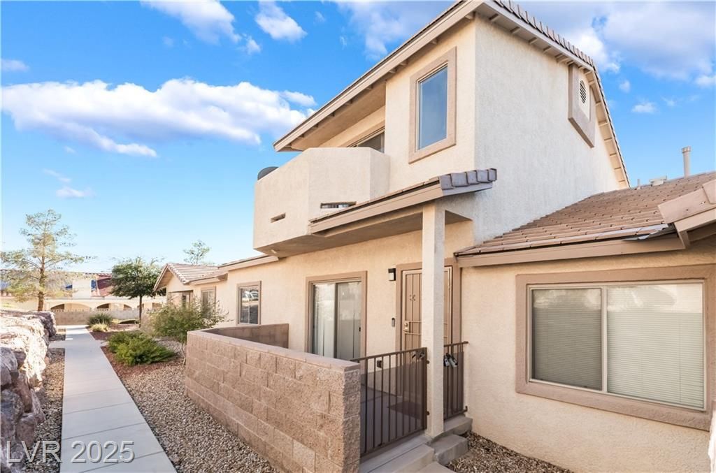 Beautiful 3-bedroom, 2-bath home with a 2-car garage and stunning city views! This two-story 1,626 sq ft home offers comfort and convenience, featuring a private patio on the first floor and an upstairs primary suite with its own balcony and walk-in closet. Water & trash bill included in HOA payment, a community pool and spa, and a quiet neighborhood perched above the Las Vegas Valley. Perfectly located near Lake Mead, Frenchman Mountain, and just a short drive to Nellis Air Force Base?ideal for military families or first-time buyers looking for peace, privacy, and amazing views of the city lights.