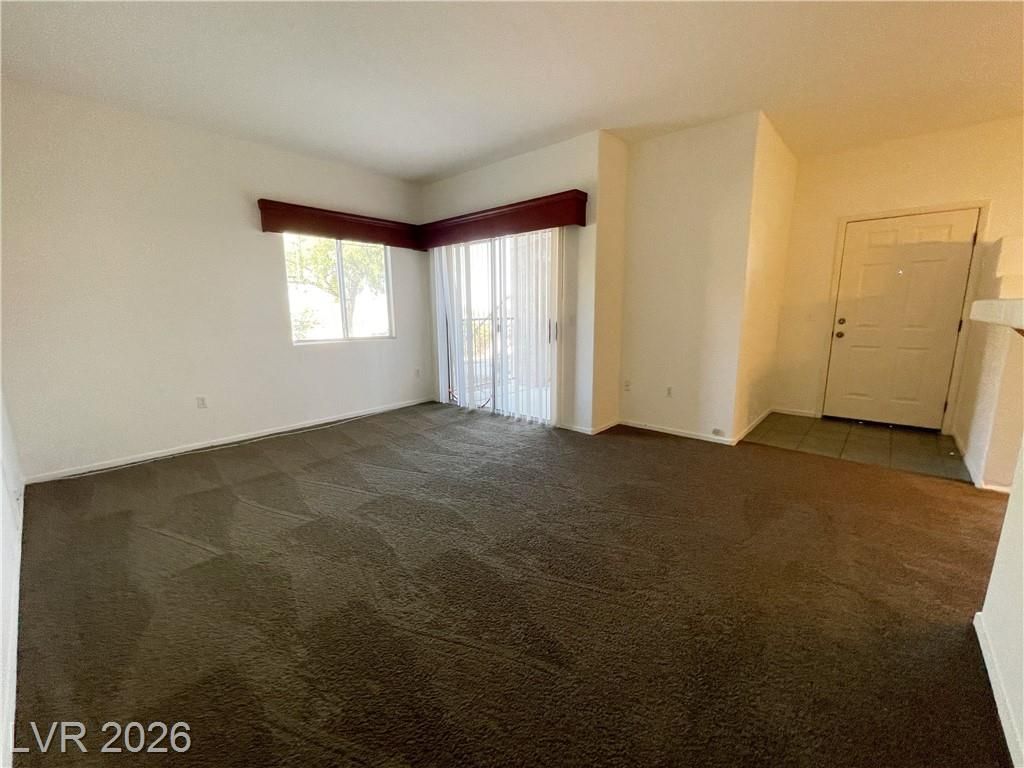 First floor 2-bedroom, 2-bath home conveniently located near Nellis Air Force Base. Enjoy easy access to the community pool and a comfortable interior featuring a mix of carpet and tile flooring throughout. The kitchen offers a breakfast bar and opens seamlessly to the living area, perfect for everyday living and entertaining. Situated in a gated community for added privacy and security.