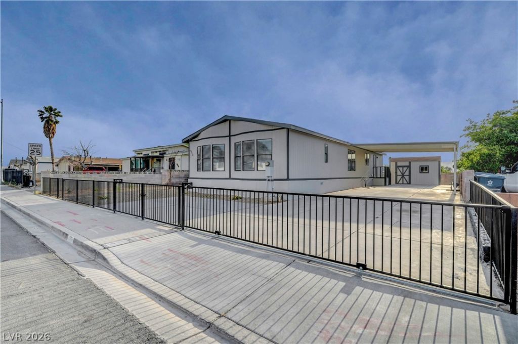 Welcome to this beautifully renovated home, converted to real property, in the desirable Sunrise Manor area of Las Vegas! Offering over 1,400 square feet of thoughtfully updated living space, this 4-bedroom, 2-bathroom home is truly move-in ready. Step inside to a fresh, modern interior featuring stylish upgrades throughout, including new quartz countertops, fresh interior paint, and brand-new carpet. The living room is highlighted by custom wood-paneled accent walls, adding warmth and a designer touch. The open-concept layout creates a seamless flow between the living, dining, and kitchen areas?perfect for everyday living and entertaining alike. Situated on a generous 6,534 sq ft lot, the property also includes a spacious storage shed?ideal for tools, hobbies, or additional storage. The front yard showcases new landscaping along with new fencing and a gate, adding both privacy and great curb appeal.