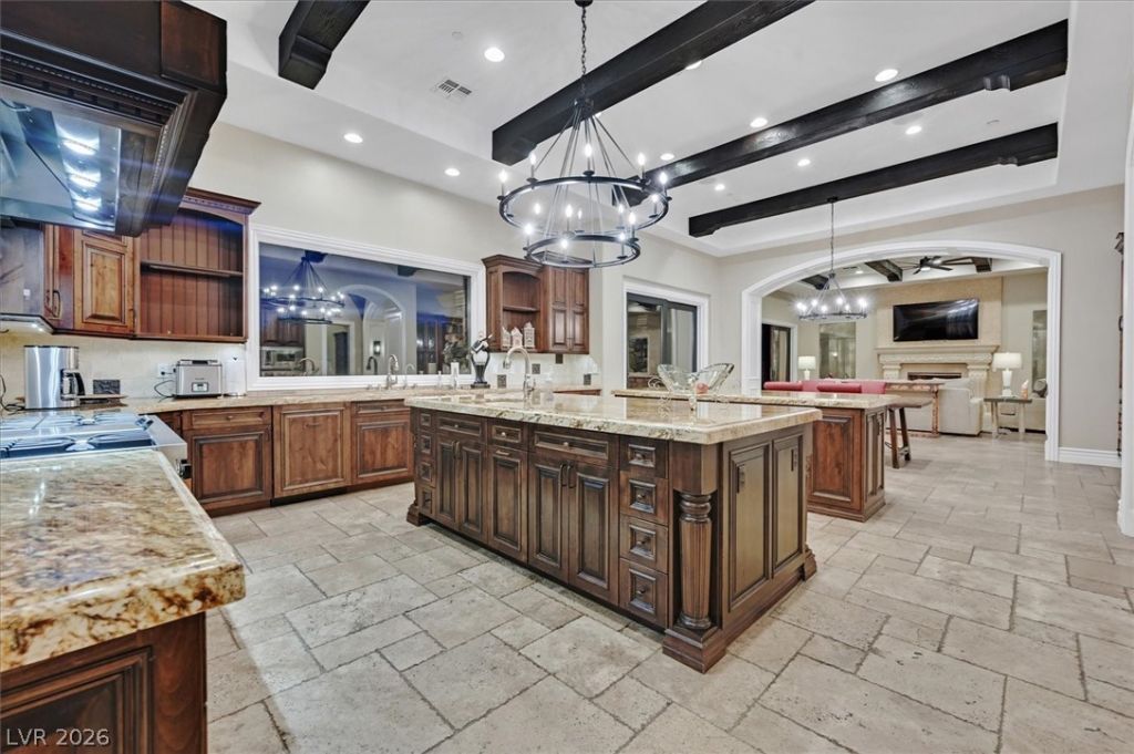 Built by a custom home builder in Section 10, this recently remodeled 8,000+ sq ft residence showcases craftsmanship only a builder's personal home can offer. The chef's kitchen features top-tier appliances for grand-scale hosting. The media room delivers a cinematic experience, and the home office with his-and-her desks suits the modern professional. Enhanced by a Lutron lighting system and whole-house sound, the home's sophistication continues into the primary suite with a retreat and a new spa ensuite rivaling world-class hotels. Walk-in closets include an additional washer and dryer. Balconies frame the Nevada sky, from Spring Mountain sunsets to the glow of the Las Vegas Strip. A sparkling pool and spa elevate summer living. The huge 6-car garage with loft offers storage or workshop space. The casita serves as a high-end guest suite or detached office. A builder's personal masterpiece in a gated cul-de-sac.
