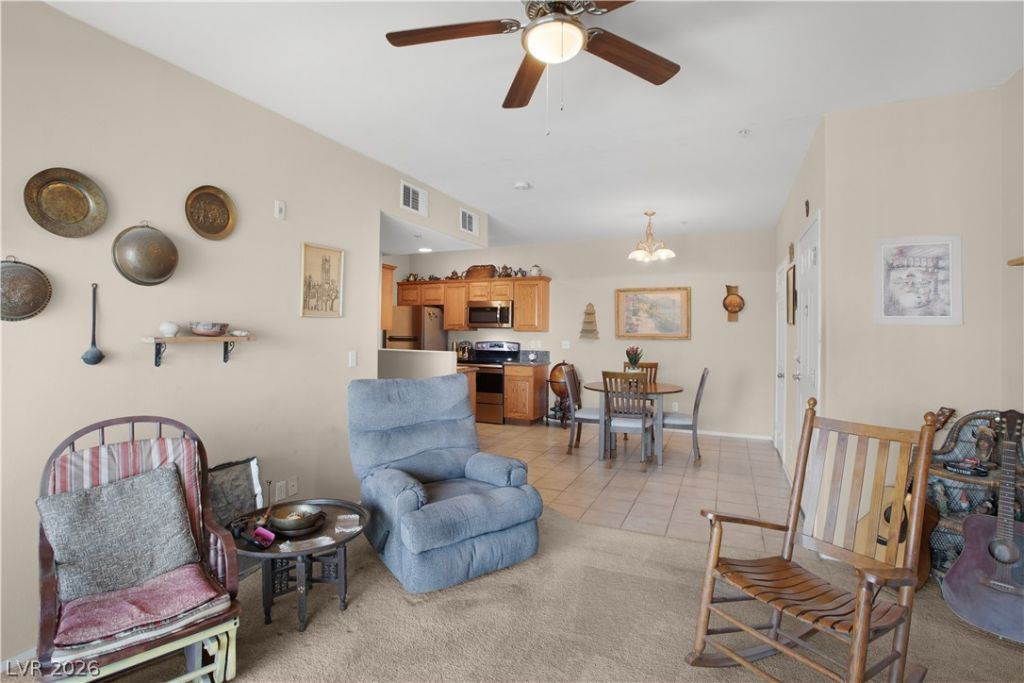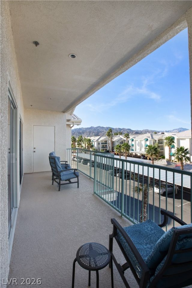 Welcome home to this beautifully designed condo offering 2 bedrooms and 1 bathroom in one of Laughlin's most desirable communities! Step inside to a bright, open-concept living space that feels both welcoming and functional. The contemporary kitchen is outfitted with granite countertops, black appliances with stainless accents, a pantry, and a dedicated in-unit laundry room for added convenience. Sunlight fills the living area and bedrooms, opening out to an oversized covered balcony, perfect for relaxing while taking in scenic mountain views. Positioned on a private corner of the community, this building is the newest one in the South Bay Community. Residents of South Bay enjoy resort-style living within a gated community featuring two heated pools and spas, a clubhouse, fitness center, steam room, RV parking and tennis and pickleball courts. Make this stunning condo yours!