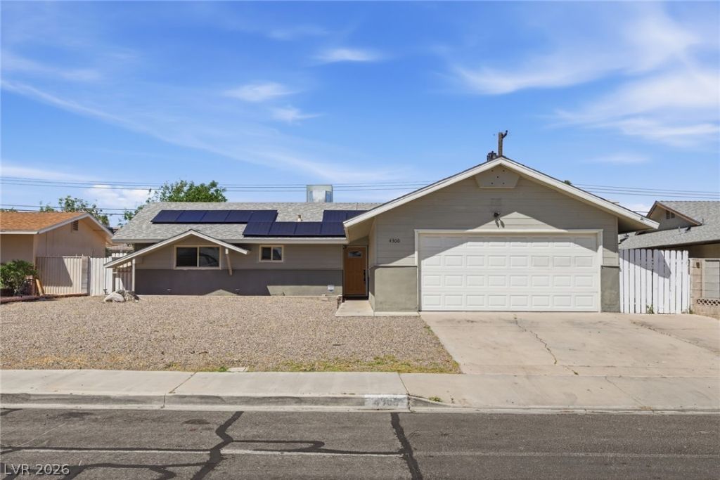 Completely Renovated w/ Solar! This charming and inviting home nestled in an easily accessible neighborhood. This spacious residence boasts four bedrooms and two fully remodeled bathrooms, providing ample space for comfortable living. Step into the heart of the home, where the kitchen combines style and functionality. Upgraded with sleek white shaker cabinets, quartz countertops, and a convenient island. The matching stainless steel appliances add a modern touch. Adjacent to the kitchen, is the family room filled with warmth and coziness. Gather around the fireplace on chilly evenings, creating memories with loved ones in this inviting space. Primary bedroom is oversized and features an ensuite with a gorgeous shower. Beyond the interiors, the property offers backyard with covered patio ideal for enjoying the Las Vegas sunshine. Financed solar panels with assumable loan to reduce energy bills!