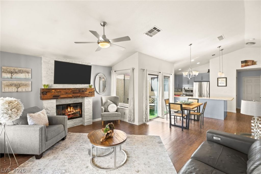 Welcome to guard-gated Painted Desert. Beautifully upgraded from top to bottom, this move-in-ready home showcases quality craftsmanship and designer finishes throughout. Recent improvements air conditioning system, custom cabinetry, and a fully remodeled kitchen featuring stainless steel appliances, ample counter space, and a functional layout ideal for everyday living and entertaining. The open living area is enhanced by a stunning stone and wood fireplace. The spacious primary suite offers direct access to the backyard through sliding glass doors and features a beautifully updated en-suite bathroom with a large custom shower with glass barn door and dual sinks. Step outside to enjoy a private outdoor retreat with a covered patio, new putting green, and low-maintenance landscaping. The home also features a gated front courtyard with pavers, providing added privacy and curb appeal. This home combines style, comfort, and functionality?truly a must-see!