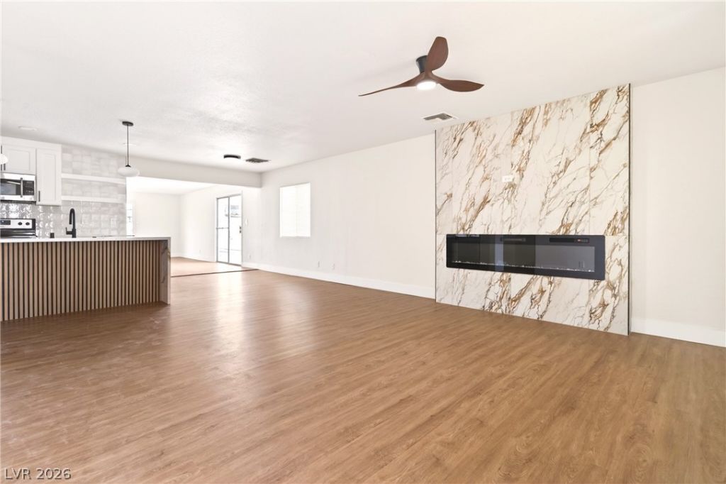 Fully remodeled 4-bedroom, 3-bath home in Las Vegas with 1,766 square feet of thoughtfully updated living space. The remodel runs deeper than cosmetic ? new plumbing, new drywall, new LVP flooring throughout, and a brand-new kitchen built from the ground up. An oversized fireplace anchors the living area against a striking accent wall, creating a natural focal point the moment you walk in. Outside, the 6,534-square-foot lot offers a large newly redone backyard with dedicated RV parking, a rare find at this price point. With three full bathrooms and a layout designed for everyday living, this home delivers real value in a competitive market. Schedule your private showing today.