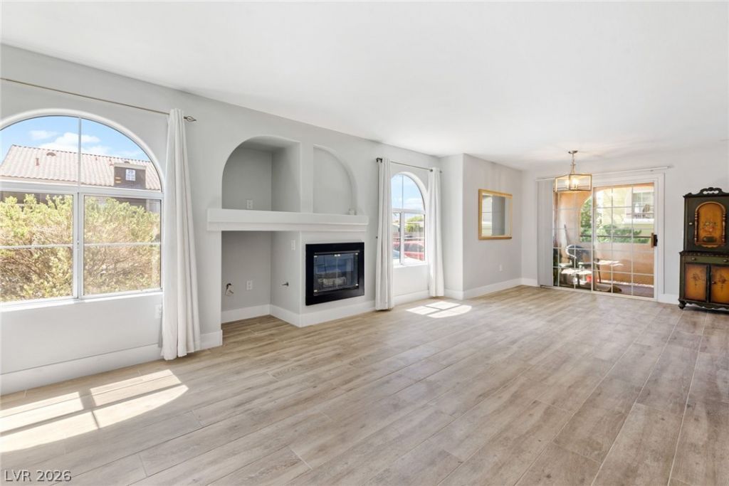 Beautifully updated 2-bedroom, 2-bath condo located in the gated Rain Tree West community. This stylish home features wood-grain tile flooring throughout, creating a modern and cohesive feel, along with an open-concept living room anchored by a cozy fireplace?perfect for relaxing or entertaining. The updated kitchen showcases quartz countertops, upgraded cabinetry, and a convenient breakfast bar ideal for casual dining and everyday living. Both bathrooms are well-appointed, complementing the home's thoughtful updates throughout. Step outside to a covered balcony, offering a private outdoor retreat to enjoy morning coffee or unwind in the evenings. Residents of Rain Tree West enjoy access to resort-style amenities including a sparkling pool and spa, all within a secure gated setting. A perfect blend of comfort, style, and convenience in a prime location.